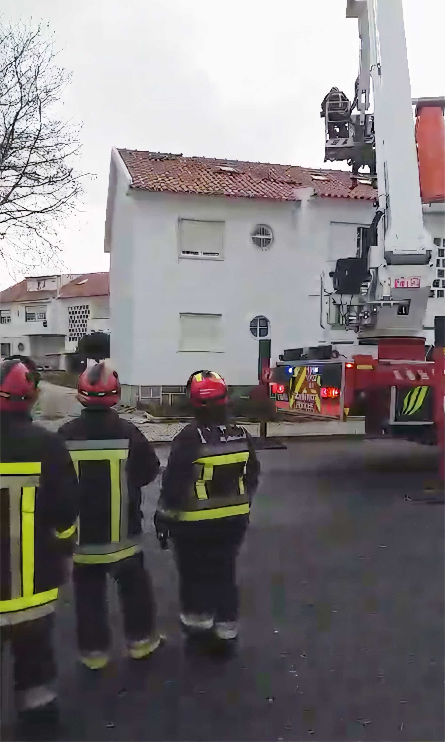 A reposição das telhas que se soltaram decorreu com sucesso até às 19h00.