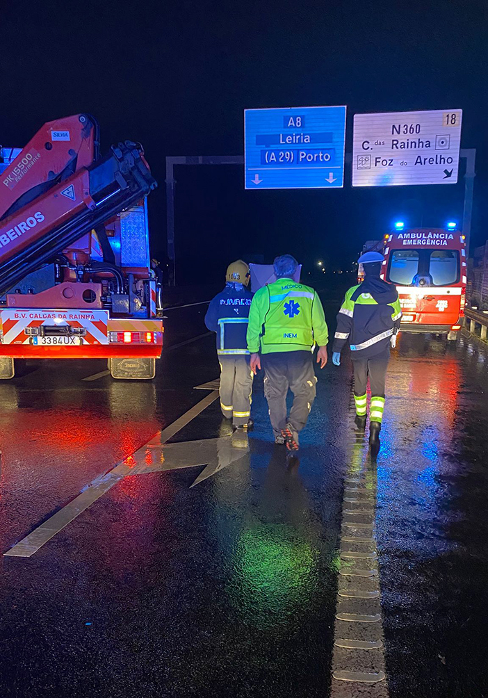 O alerta foi dado pelas 20h36 e o socorro às vítimas, ambas de nacionalidade brasileira, envolveu dezoito operacionais e oito viaturas dos bombeiros, INEM, GNR e Auto-Estradas do Atlântico, tendo a via sido cortada ao trânsito cerca de cinco horas, até às 01h38.