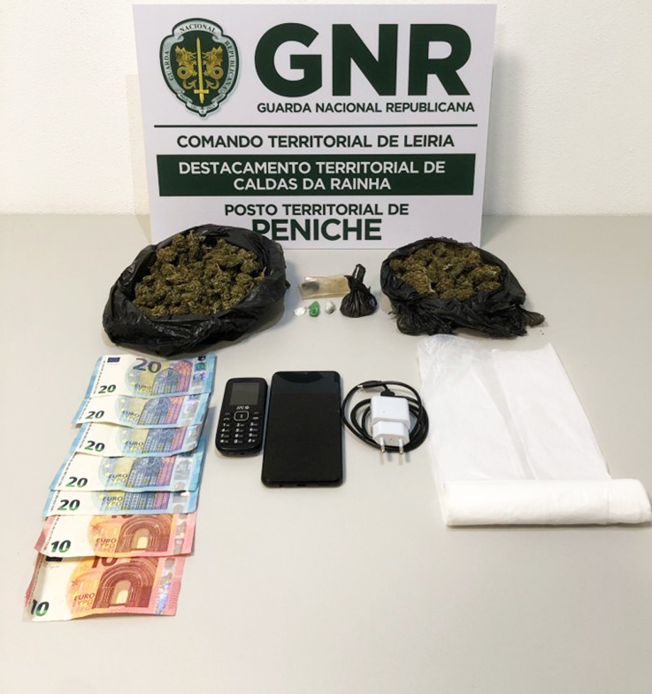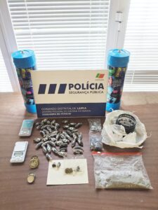 Após buscas, constatou-se que tinha em casa e no carro 64 doses de canábis, 61 de cocaína e uma de heroína, para além de diversos sacos de embalamento de produto estupefaciente, dois telemóveis, um carregador e 120 euros. Foi tudo apreendido assim como um veículo.