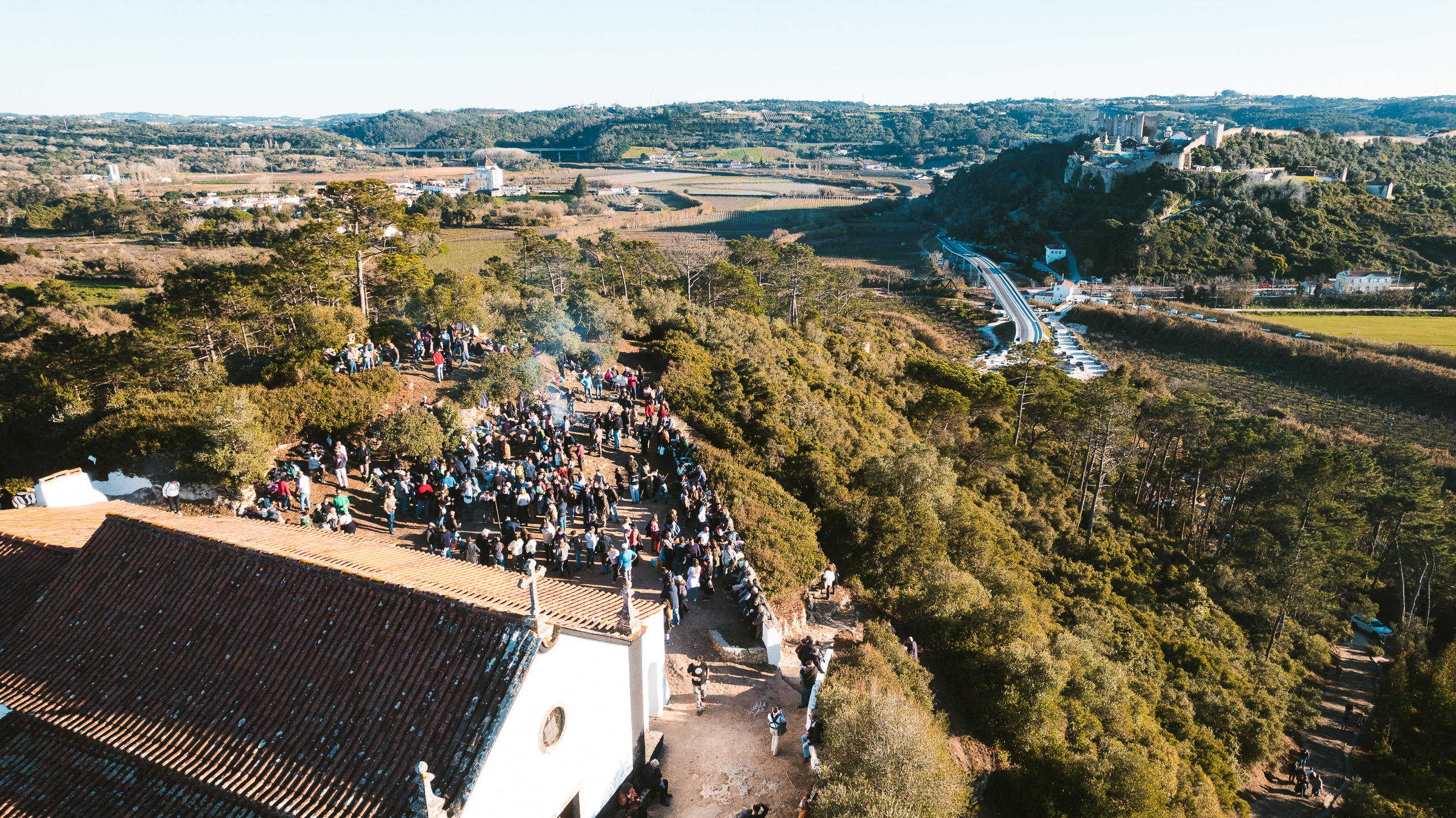 Os romeiros fazem fogueiras para assar chouriços e outras carnes e a música, tocada pelos populares, prolonga a festa até ao pôr do sol.